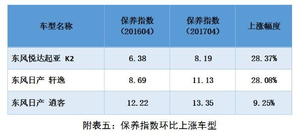 保養指數方面,重新采集了各樣本車型保養周期內在4S店的養護項目、配件及工時價格,導入計算公式核算各車型的保養指數。在樣本車型中保養最高的車型為梅賽德斯奔馳S級,保養指數為40.85;最低的車型為廣汽豐田雅力士,保養指數為4.69。對比上期數據發現,東風悅達起亞K2保養指數環比上漲1.81,六萬公里保養費用上漲了1806元,漲幅達28.37%。